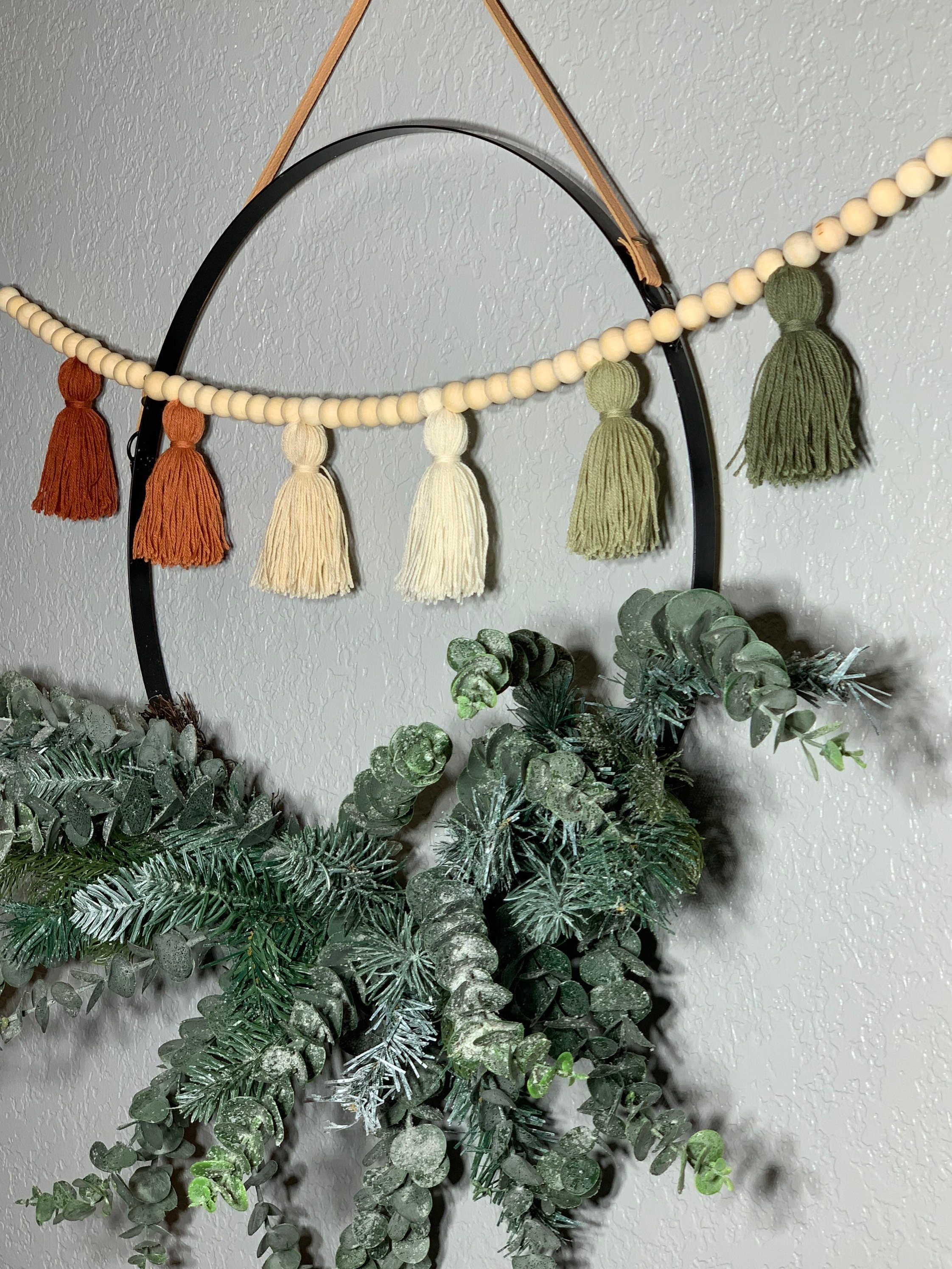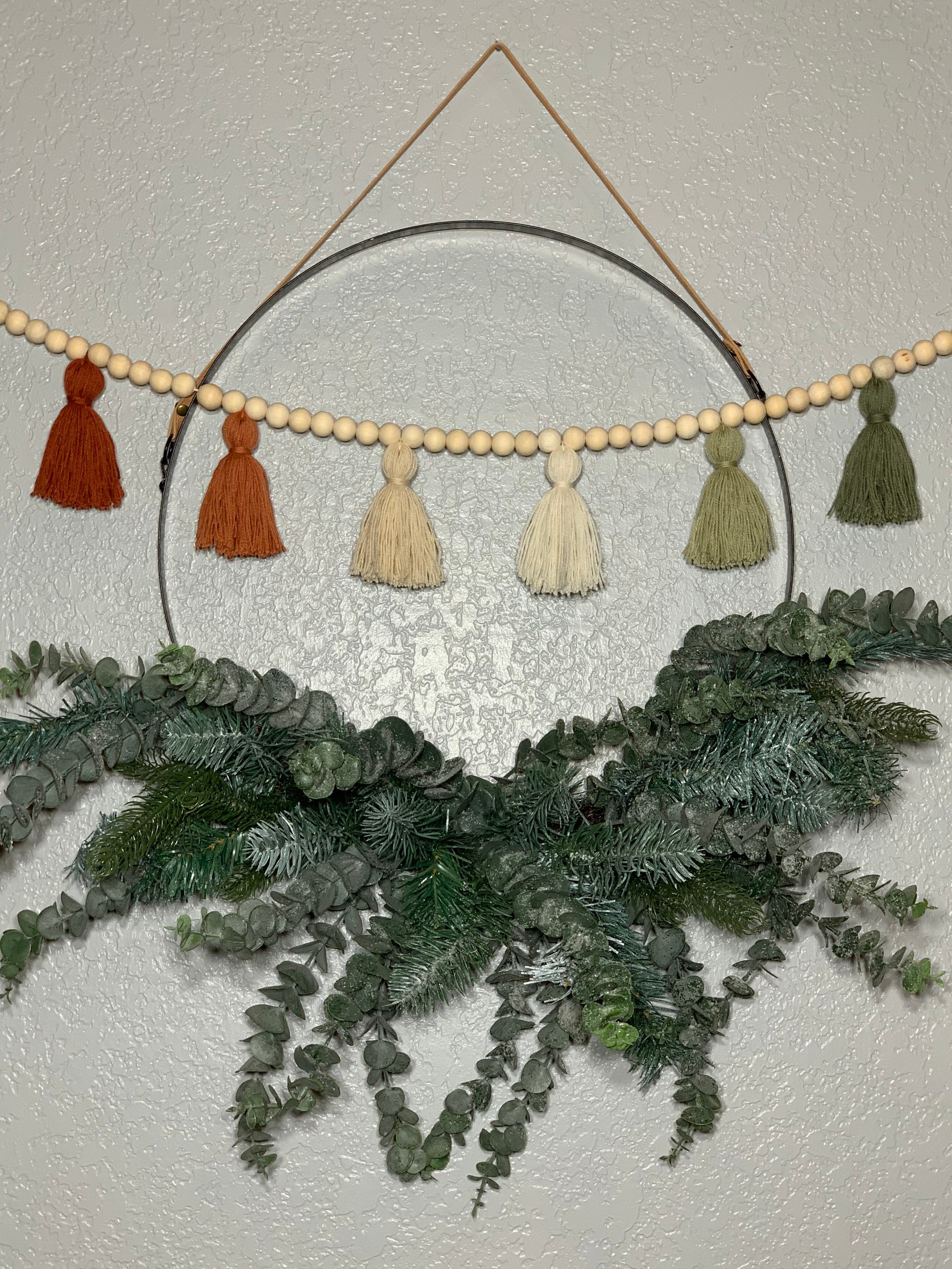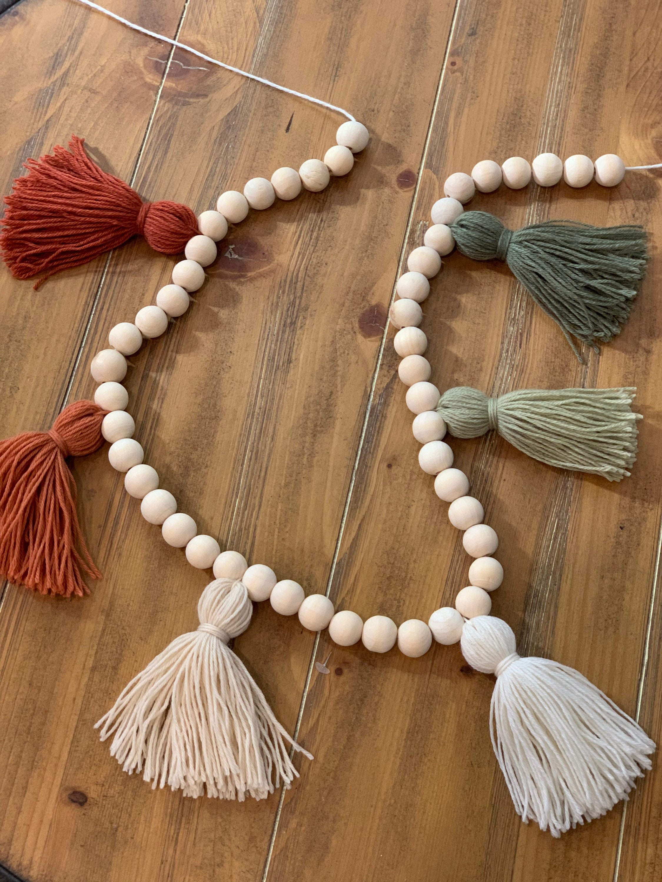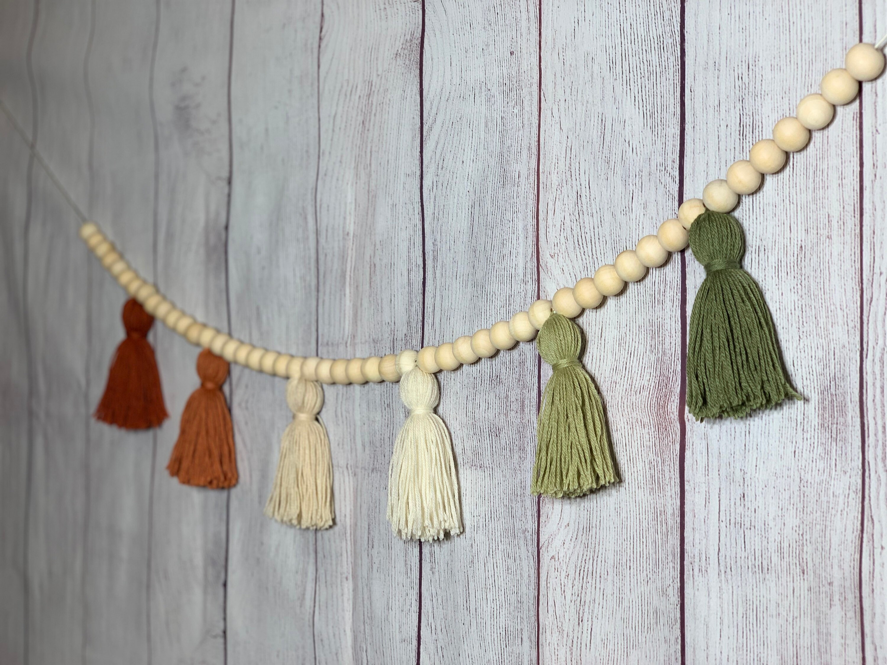 Hello, Fall! Let the decorating for the new season begin. This beautiful fall banner includes 6 different autumn shade colors separated by 7 wooden beads. The whole string measures about 5 ft, and from first bead to last bead measures just short of 3 ft. It’s the perfect addition to add to any room.